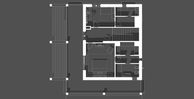 The design is based on a regular 5 × 5 meter structural grid, which defines both the spatial organization and the compositional logic of the building. This modular framework allows for a clear distinction between public and private functions: the ground floor accommodates shared living spaces, while the upper level is reserved for more intimate, private areas. Circulation is direct and legible, minimizing residual spaces and reinforcing the overall efficiency of the layout.